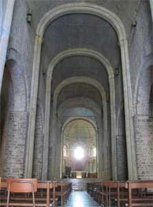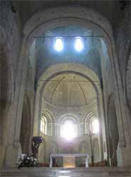 L'interno è a tre navate divise da pilastri quadrangolari che sorreggono arcate a doppio rincasso. Al XIII secolo risale la loro modifica in pilastri polistili e la costruzione della botte centrale scandita da eleganti arconi trasversi che si prolungano sino a terra. Si tratta questa di una caratteristica che rimanda ad un'influenza francese. Alla stessa influenza rimandano le monofore absidali e la struttura del presbiterio.