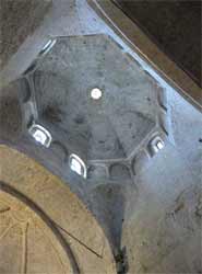 Al di sopra si innalza la cupola del tiburio poggiante su un tamburo il cui la to Est è aperto da due finestre affiancate da nicchie cieche; il lato Ovest è privo di finestre mentre gli altri due, più corti, hanno una sola finestra.