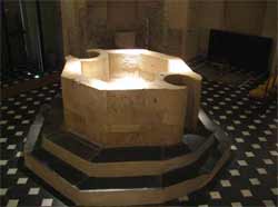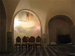 L'interno è diviso in due parti da una volta mediana Seicentesca. In quella inferiore si conservano le nicchie alternate a pianta semicircolare e quadrangolare.