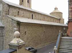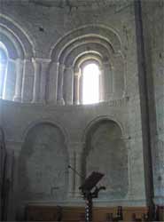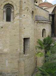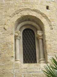 Una finestra simile si apre in ciascuna delle abside laterali. Degni di nota gli archetti della linea di gronda dalla decorazione plastica.