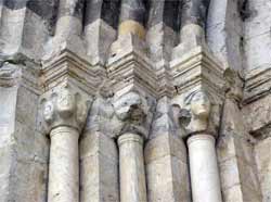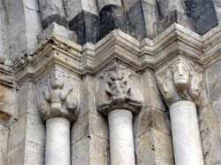 Lo strombo è occupato da tre ordini di colonnine dai capitelli figurati; al di sopra l'archivolto a conci bianchi e neri si sviluppa in un accentuato arco ogivale.