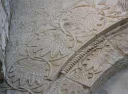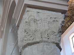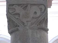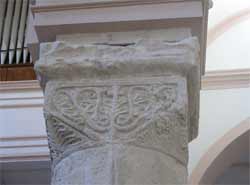 Quasi tutti i capitelli sono del tipo a cubo smussato, con le decorazioni ricavate incidendo le facce.