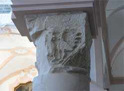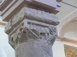I restauri dell'interno hanno messo in vista le colonne originarie dagli interessanti capitelli.