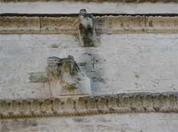 Al di sopra ed ai lati sporgono delle mensole decorate con protomi di leoni ed aquile, caratteristiche delle chiese pugliesi