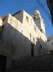 L'attuale facciata ed il campanile sono rifacimenti barocchi. Sul fianco Nord sono osservabili, seminascosti da edifici addossati, alcuni resti romanici.