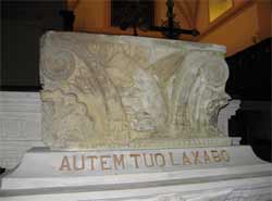 Il lettorino è costituito da un capitello medievale dove un animale (forse una volpe) si arrampica tra i caulicoli corinzi.
