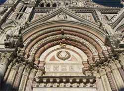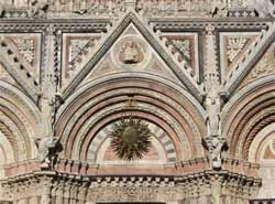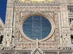 Nel 1376 Giovanni de cecco completò la parte superiore della facciata con il rosone che riprende la struttura di quello di Orvieto.