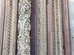 L'effetto decoriativo si gioca nell'accostamento di elementi alternati bianchi e rosa ricoperti con rilievi e tarsie.