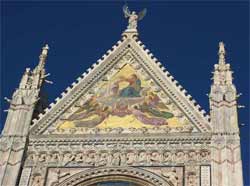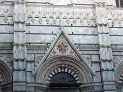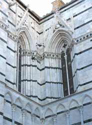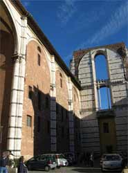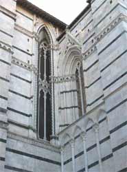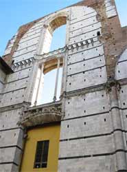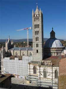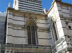 Il duomo di Siena costituisce uno degli esempi, non coronati da pieno successo, dei tentativi fatti nel XIII secolo di trasformare secondo l'estetica gotica, reinterpretata secondo canoni italiani, di un edificio completato nelle parti essenziali nel 1250 secondo un progetto ancora di spirito romanico. Tentativi successivi di creare un edificio di dimensioni tali da sfidare i progetti di Firenze ed Orvieto vennero abbandonati nel XIV secolo a seguito di un peggioramento della situazione economica di Siena.