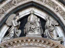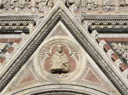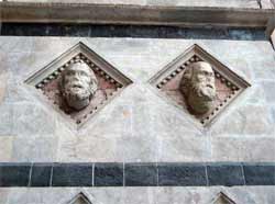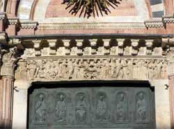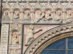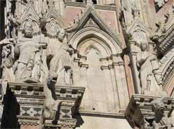 Al di sopra del livello dei timpani si osservano le copie delle famose statue di Giovanni raffiguranti profeti e sibille.