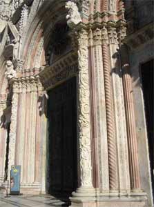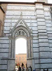 Proseguendo lungo il fianco destro della chiesa si passa attraverso quello che sarebbe dovuto diventare un portale laterale del Duomo Nuovo. Risalente al 1345 è dovuto a Giovanni di Agostino.