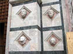 Nella parte inferiore sono degne di nota le protomi umane e di leoni che sporgono da nicchie a forma di losanga.